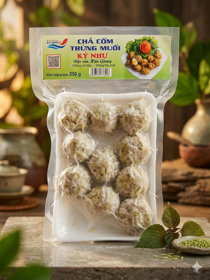 Cắn một miếng là mê ngay! Lớp ngoài vàng giòn, bên trong mềm dẻo với cốm thơm đặc trưng, hòa quyện cùng thịt đậm vị. Điểm nhấn chính là lòng đỏ trứng muối béo bùi, mằn mặn, tạo nên hương vị cực kỳ cuốn hút.